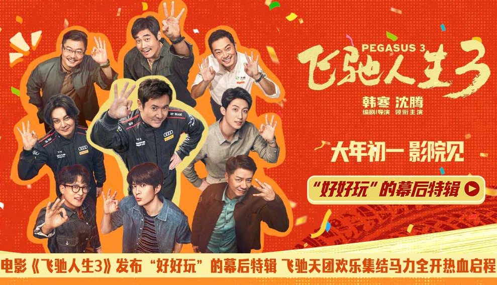 电影《飞驰人生3》发布“好好玩”的幕后特辑,飞驰天团帅气集结,不仅有系列IP原班人马全员回归,延续熟悉的配方,呈现不变的默契,更有诸多实力面孔的惊喜融入,让整体卡司阵容越发具有吸引力,老友新朋携手迎接来自全新赛道的挑战,值得期待。影片由韩寒编剧并执导,沈腾领衔主演,尹正、黄景瑜、张本煜领衔主演,魏翔、沙溢主演,范丞丞、孙艺洲主演,段奕宏特邀主演,张新成、胡先煦、李治廷、白宇帆、周政杰、高华阳特别出演,贾冰、王安宇、陈永胜、冯绍峰、郝瀚友情出演,热血狂飙,欢乐启程,大年初一影院见。